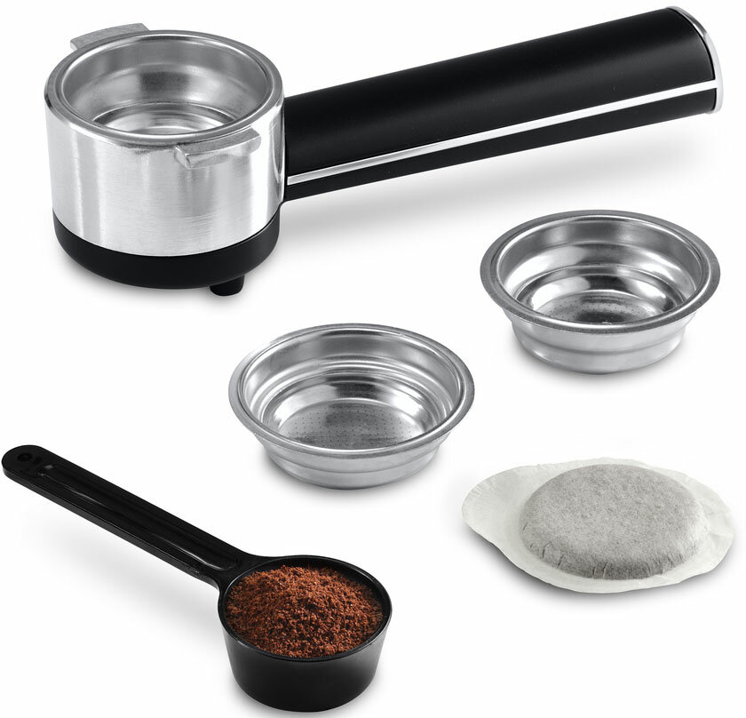 | Отзыв: | Помповая кофеварка, группа 51 миллиметр. Тип корзины портафильтра — "улучшайзер" типа "двойное дно", благодаря второму из которому получается хороший большой крема?. Благодаря ему же машина прощает огрехи в помоле и темперовке. В комплекте пластиковая ложка-темпер, даже её "улучшайзер" прощает. Но всё равно под хорошим крема? при плохом помоле плотность напитка будет плохой, поэтому хорошая жерновая кофемолка нужна.