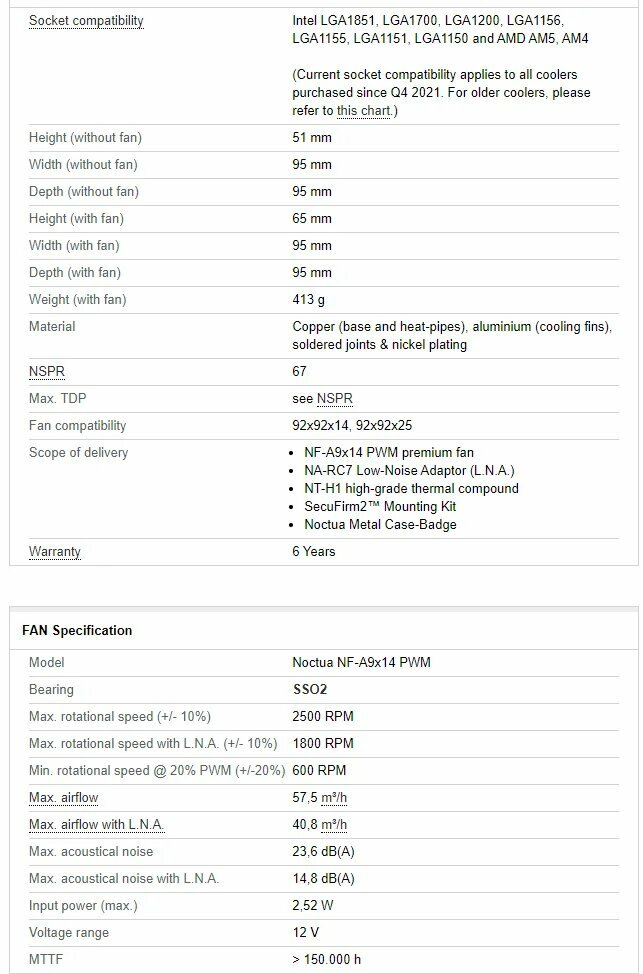 С другой стороны, если сравнивать с остальными производителями, Noctua всё равно остаётся на высоте, подумайте только: одна из лучших термопаст в комплекте (NT-H1), переходники на процессоры Intel и AMD, дополнительный инструмент для затягивания винтов, Г-образная отвёртка с длинным наконечником, которая идеально проходит между лопастями вентилятора. Всё расфасовано в отдельные пакетики, все подписано, дополнительно красочные памятки подробных инструкций по установке... В общем, NOCTUA. В среднем, по рынку чуть дороже, но качество продукта запредельное. Ставил в mini-ITX на i7-7700, начитался ужасов про перегревы камня... уже собирался снимать скальп.. но NH-L9x65 избавил от нервов и фрустраций, если что-то пошло бы не так. Корпус: SilverStone Sugо SG-08 Температура простоя на термопасте NT-H1 из комплекта: 32°C (наносил точкой ~2.5х2.5mm) Температура при нагрузке: ? 70°C Проц не гнал. |