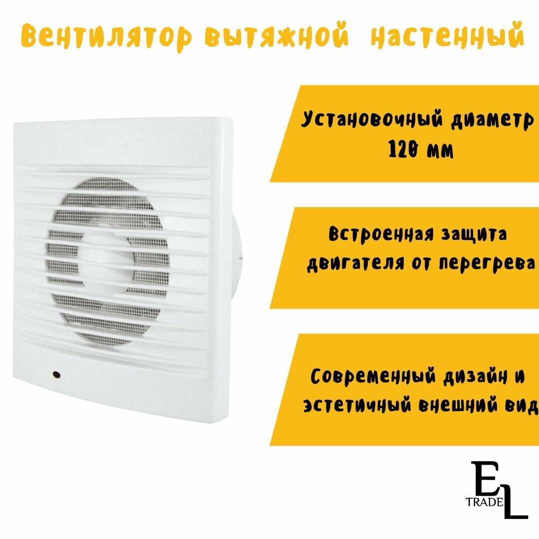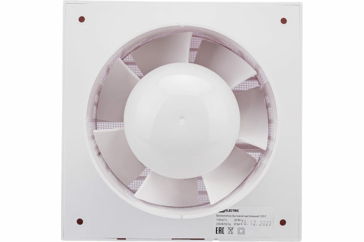 Вентилятор вытяжной бытовой настенный 120 С (157х157х76 мм, белый, IP34)