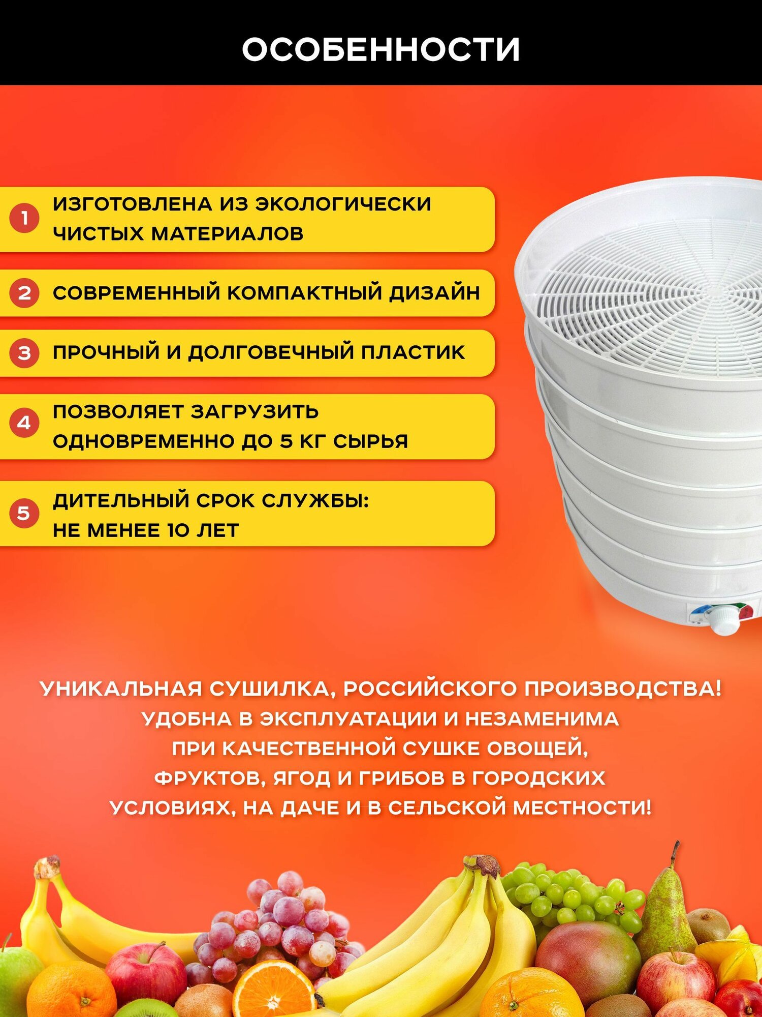 Сушилка для овощей Ветерок ЭСОФ-0.5/220 5 поддонов повышенная производительность белый