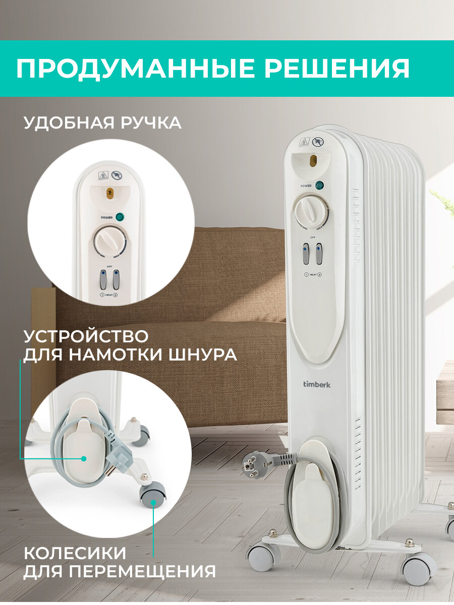 Масляный радиатор Timberk TOR 21.1507 SLX 1500 Вт колеса для перемещения термостат белый