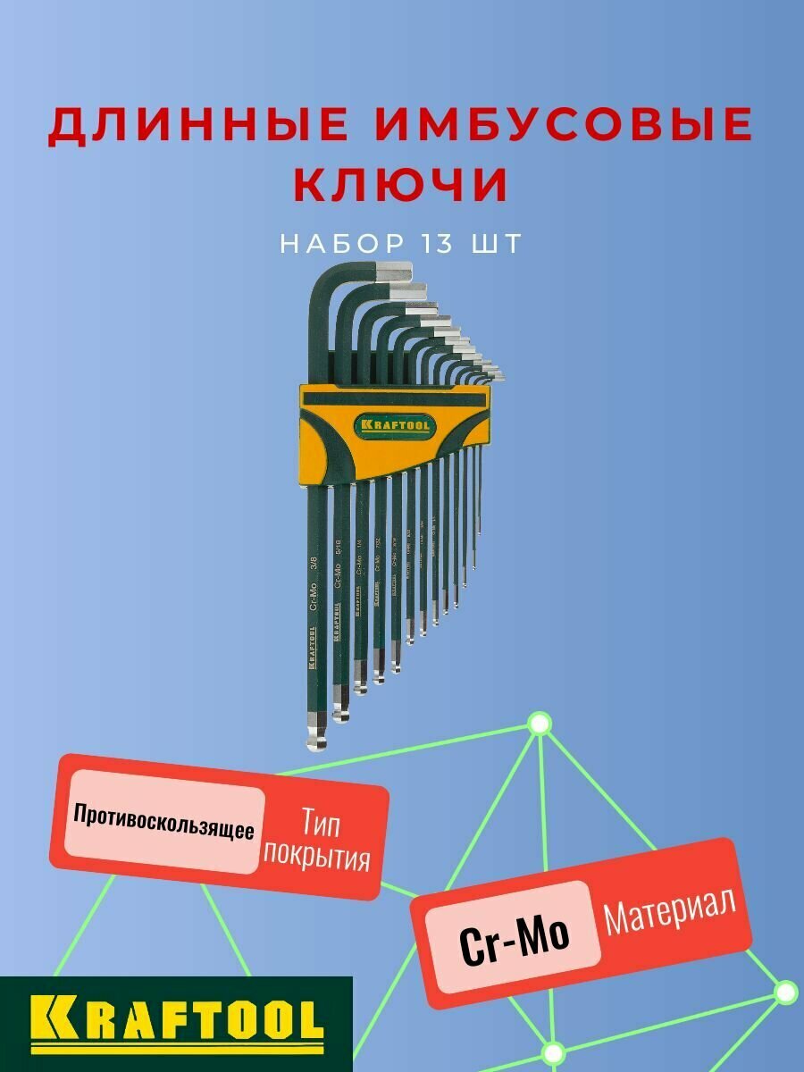 Набор длинных имбусовых ключей KRAFTOOL Industrie 13 шт. ( 27444-H13 )