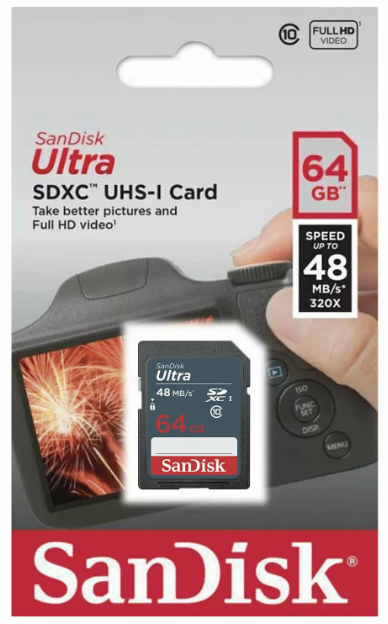 Карта памяти SanDisk SDXC Ultra Class 10 UHS-I U1 (48/10MB/s) 64GB