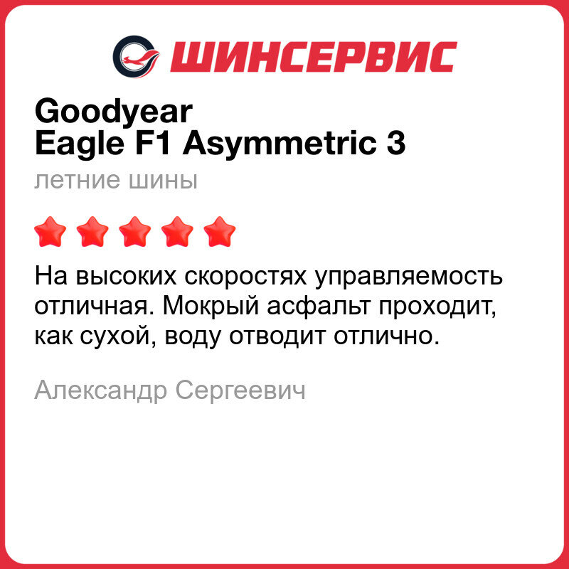 СохранитьШины Goodyear Eagle F1 Asymmetric 3 305/30R21 104Y интересное: