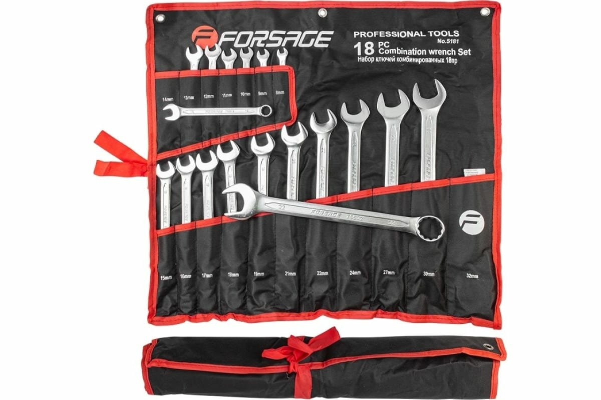 Набор Ключей Комбинированных, 18 Пр: 8-19, 21, 22, 24, 27, 30, 32 Мм, На Полотне FORSAGE арт. F-5181