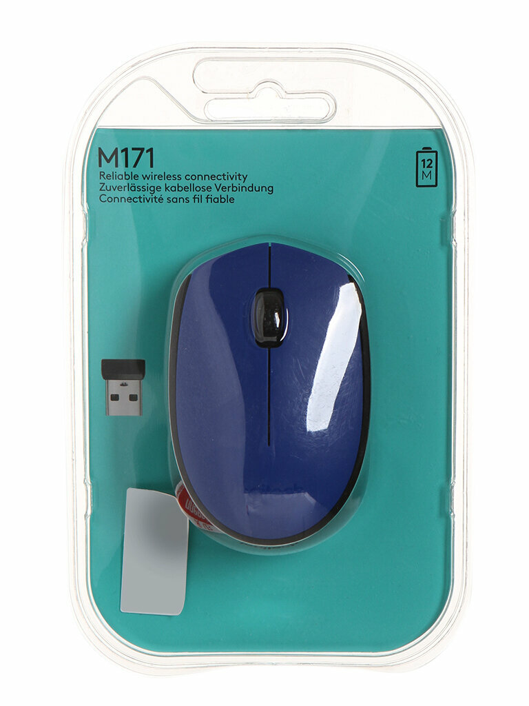 Мышь Logitech M171, оптическая, беспроводная, USB, синий и черный [910-004640]