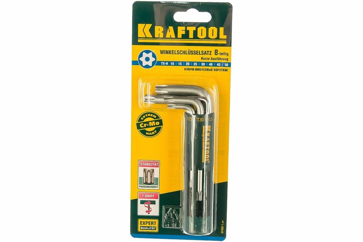 Набор KRAFTOOL: Ключи имбусовые короткие, Cr-Mo сталь, держатель-рукоятка, TORX Hole, T10-T50, 8 пред