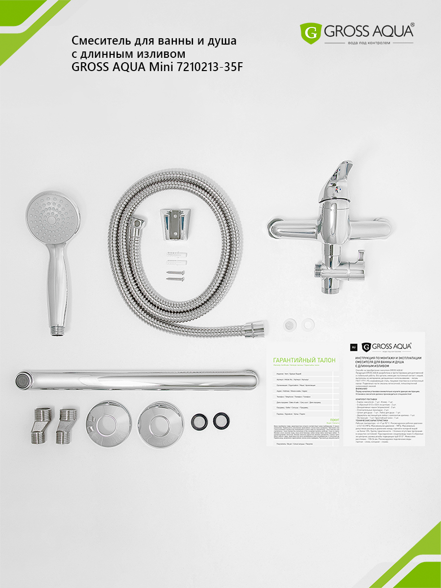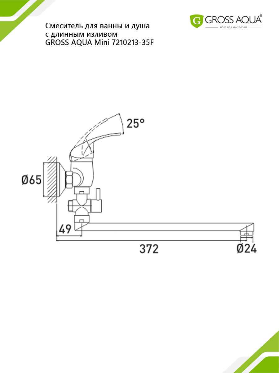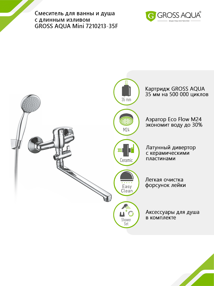 Смеситель для ванны и душа с длинным поворотным изливом Gross Aqua Mini, латунь, хром, 7210213-35F. интересное:
