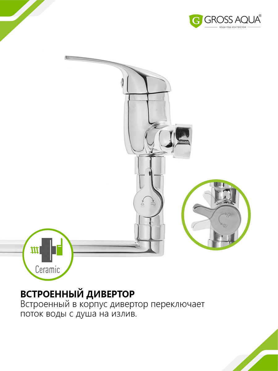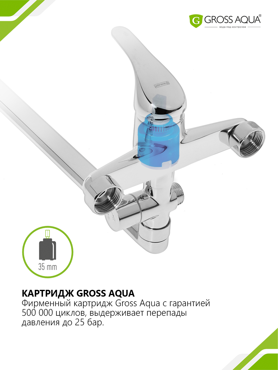 Купить Смеситель для ванны и душа с длинным поворотным изливом Gross Aqua Mini, латунь, хром, 7210213-35F.