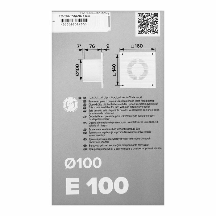 Вентилятор вытяжной ERA E 100-02, 160x160 мм, d=100 мм ERA 2987036 .