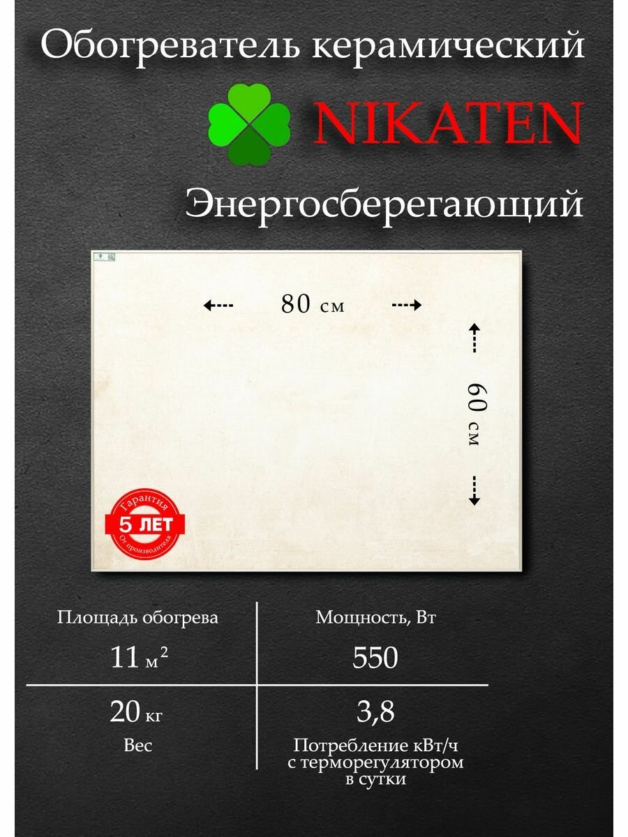 Обогреватель для дома Nikaten 550Вт инфракрасный, керамический, настенный интересное: