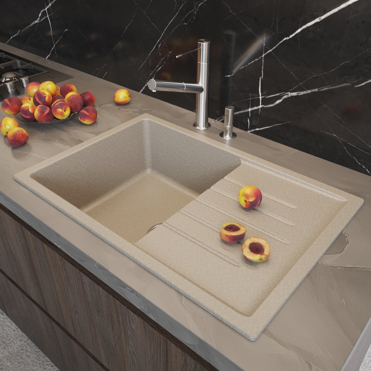 Мойка для кухни из искусственного мрамора 75х50, прямоугольная, с крылом, с сифоном, MIXLINE ML-GM 19, бежевая