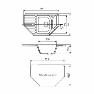 Мойка MIXLINE ML-GM24 угловая с крылом антрацит (343) 790*490*200мм NEW (552059)