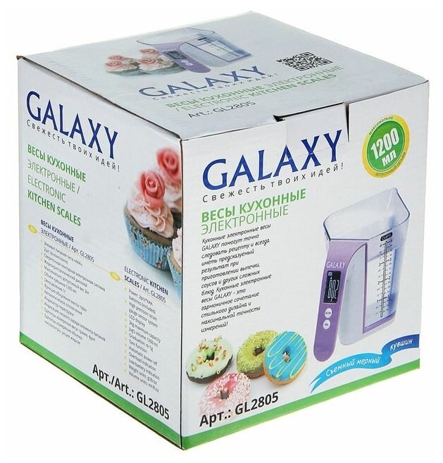 Купить --- Весы кухонные Galaxy GL 2805, электронные, до 2 кг, LCD-дисплей, фиолетовые