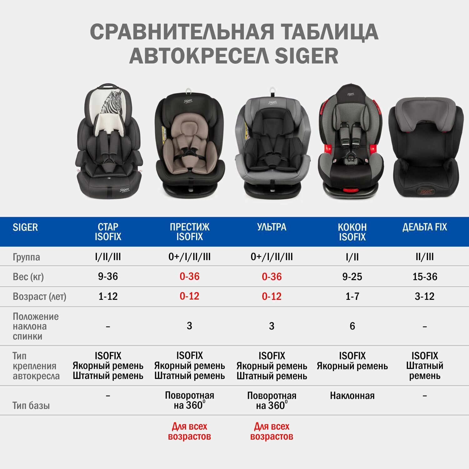Удерживающее устройство для детей SIGER "Стар ISOFIX" серый, гр. I/II/III, 9-36 кг, 1-12 лет