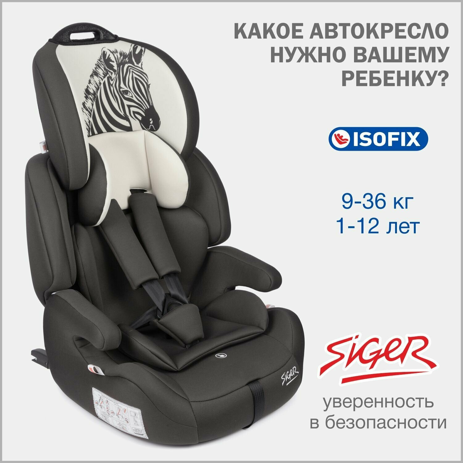 Удерживающее устройство для детей SIGER "Стар ISOFIX", гр. I/II/III, 9-36 кг, 1-12 лет, серо-бежевый, зебра