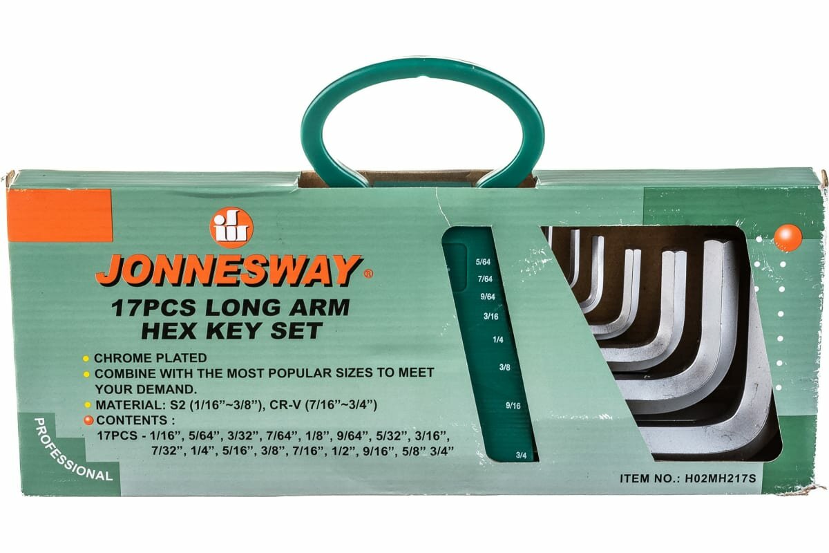 Набор шестигранников JONNESWAY удлиненных дюйм 1/16-3/4 17 предметовH02MH217S.