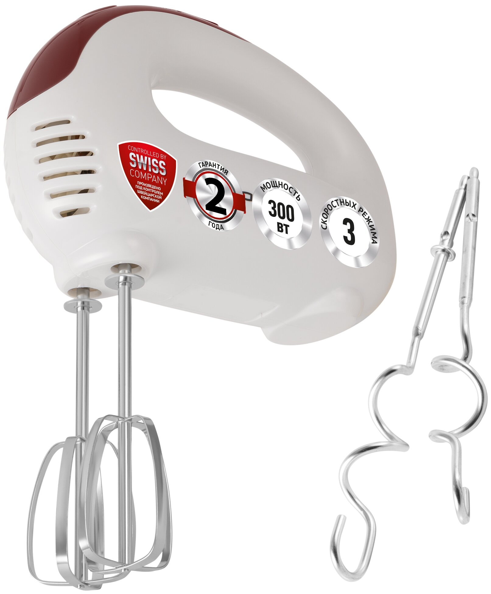Купить Миксер ручной Polaris PHM 3018 300Вт белый/бордовый