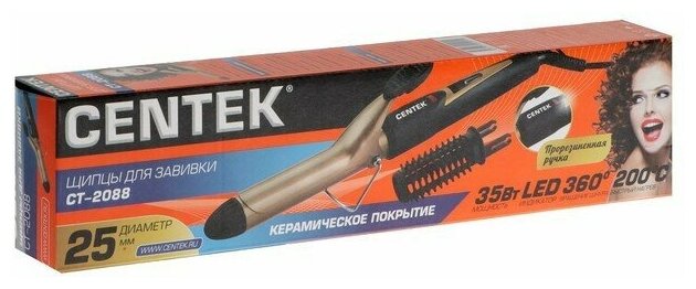 Щипцы Centek CT-2088, 35Вт, 25мм диаметр, керам покрытие, насадка щётка, черные