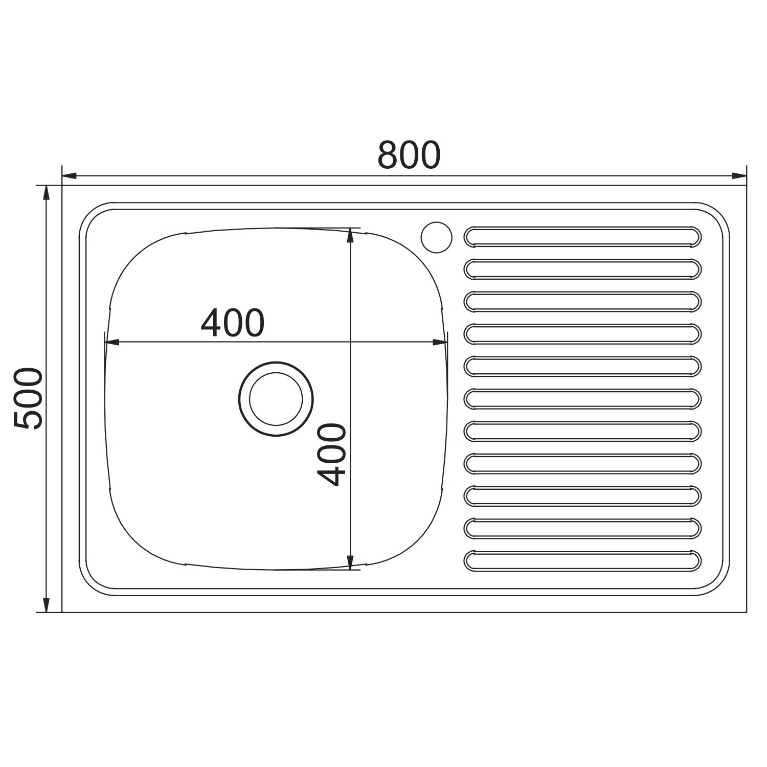 Кухонная мойка Mixline Накладная 80х50 нержавеющая сталь 0,4мм (4630030631699)