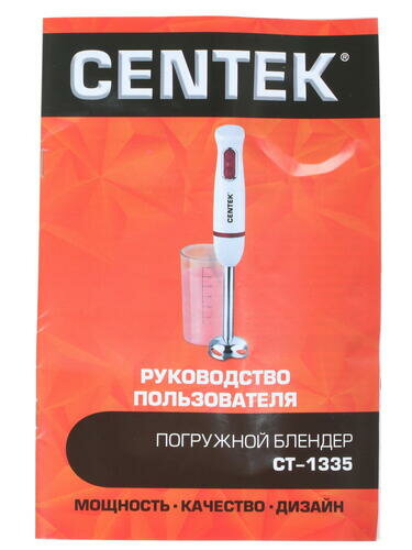 Блендер погружной CENTEK CT-1335 - белый/красный, 400Вт, стальная насадка, стакан 600мл, 2 скорости