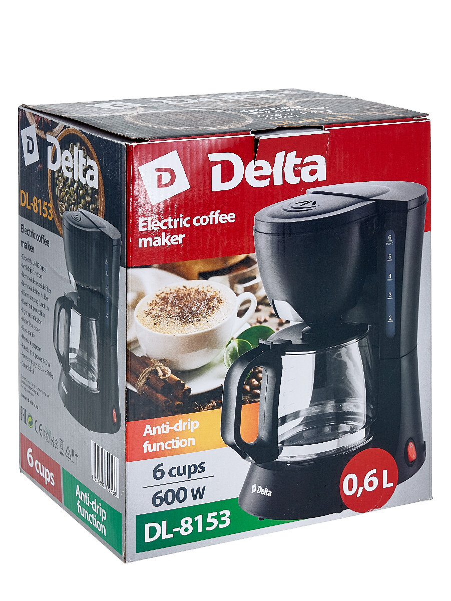 Кофеварка DELTA DL-8153 черная : 600 Вт, 600 мл (4-6 чашек)