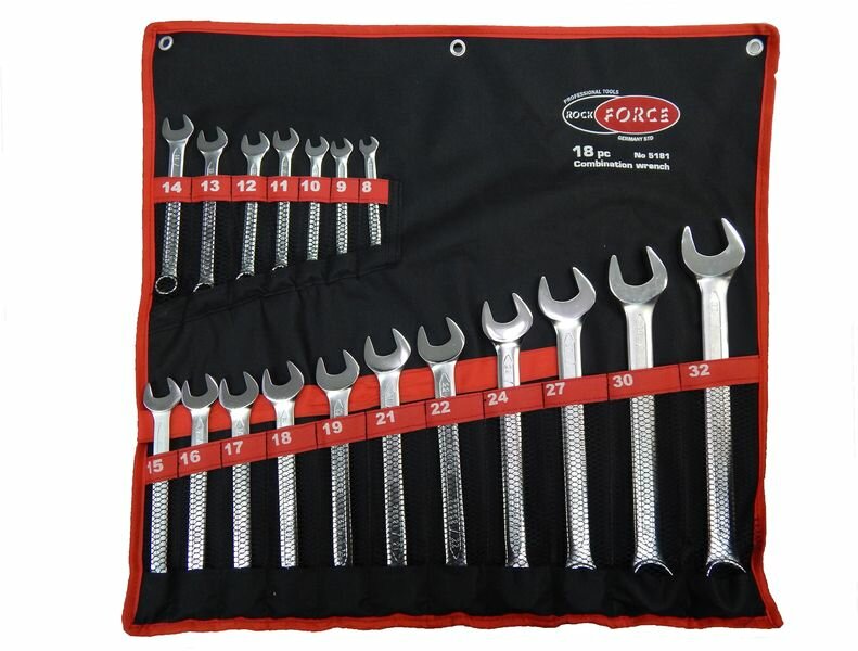 Набор Ключей комбинированных RF-5181: 8-32мм 18 предметов (на полотне) ROCKFORCE