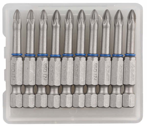 ЗУБР Бита PZ1, 50мм, 10шт торсионные кован. обточенные, хромомолибденовая ст., хв. Е1/4", ЗУБР "эксперт"