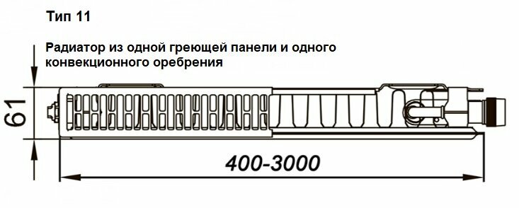 Радиатор панельный KERMI Profil-K_FK0 тип 11 высота 500 ширина 400 профильный, боковое подключение 1/2"