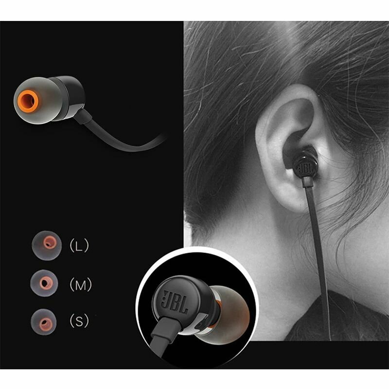 Гарнитура вкладыши JBL Tune 110 1.2м черный проводные в ушной раковине (JBLT110BLK)