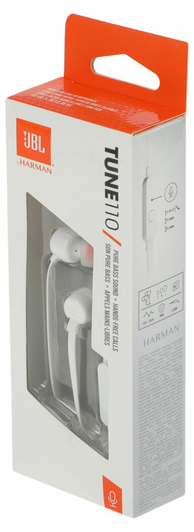 Наушники JBL Tune 110, 3.5 мм, внутриканальные, белый [jblt110wht]