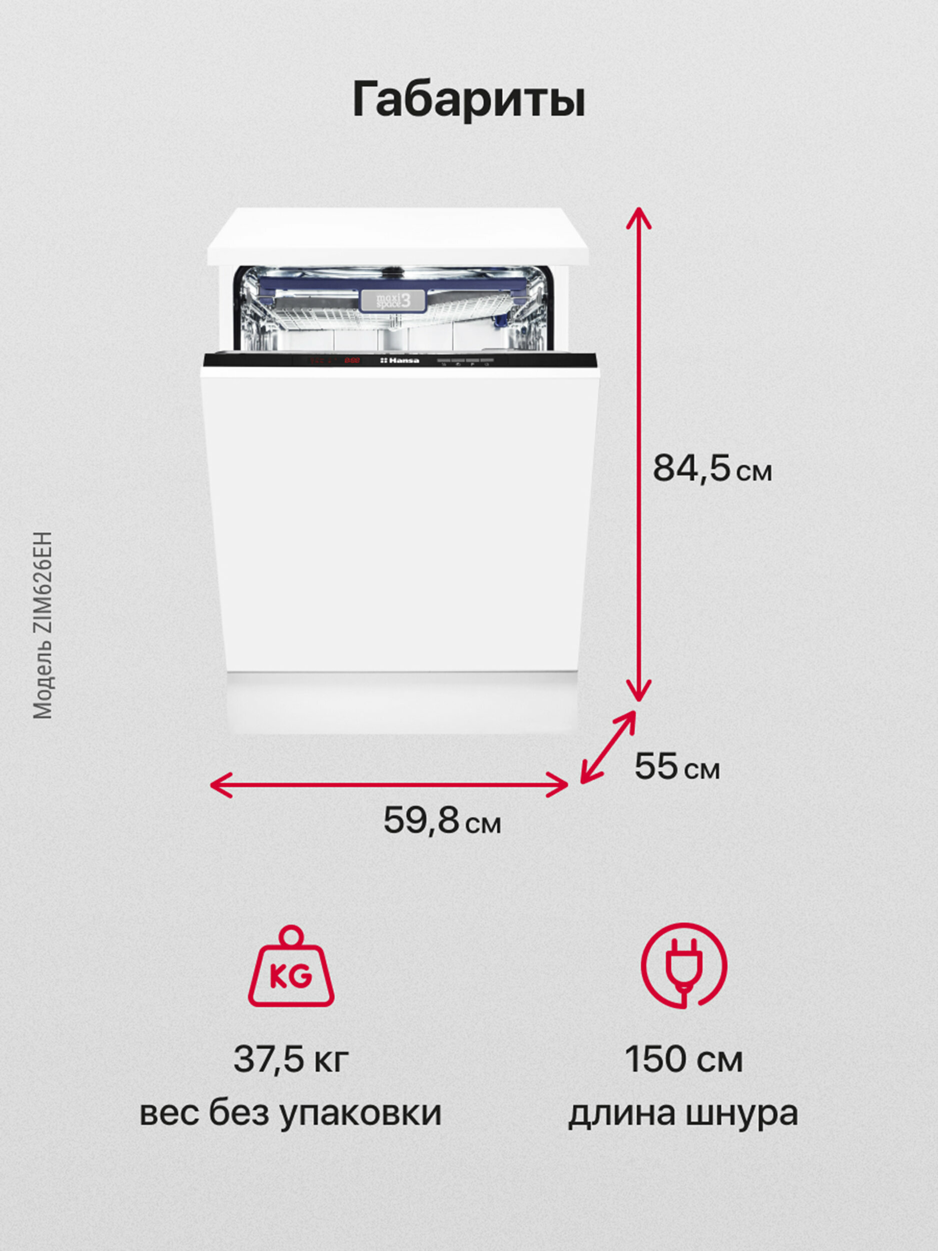СохранитьВстраиваемая посудомоечная машина Hansa арт.ZIM626EH, 60 см, с защитой от протечек, 6 программ, 3 корзины, режим быстрой мойки и половинной загрузки, отсрочка старта интересное: