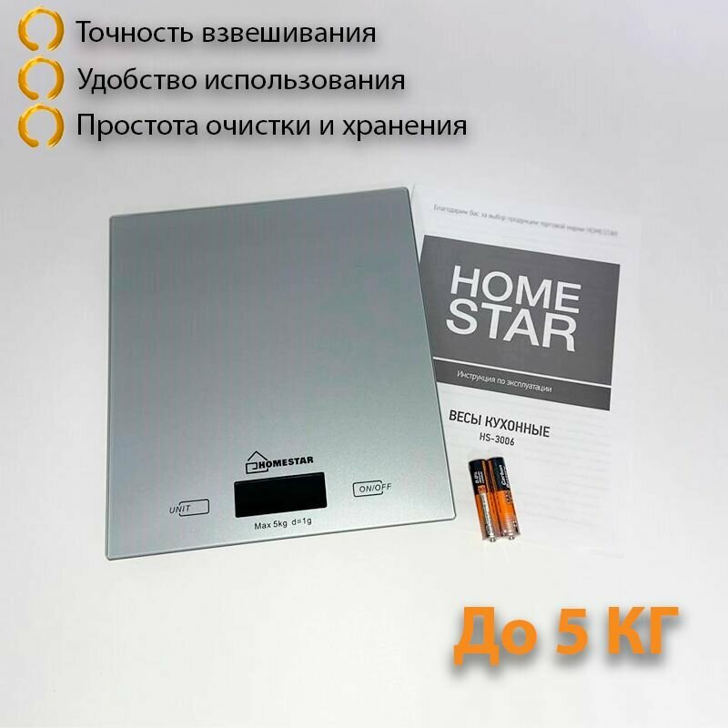 Весы кухонные HOMESTAR HS-3006, электронные, до 5 кг, серебристые