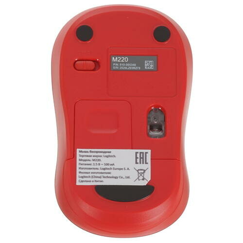 Мышь беспроводная Logitech M220 Silent Красная, оптическая, 1000dpi, 2.4 GHz, USB-ресивер, бесшумная
