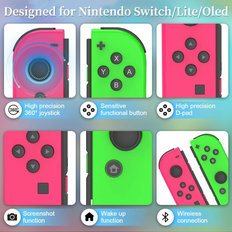 Набор контроллеров Nintendo Joy-Con, беспр,вибрация, для Nintendo Switch, зеленый, розовый