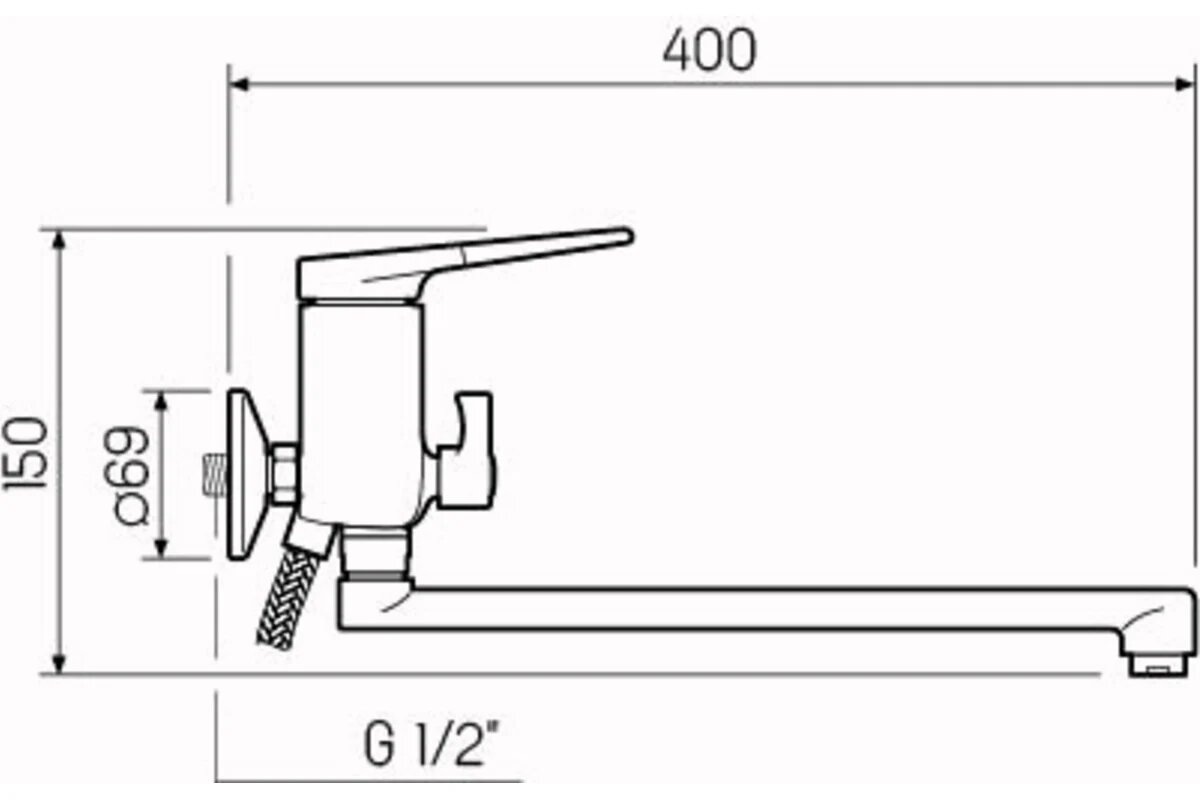 Смеситель для ванны, РМС SL121-006E, латунь, однорычажный, с душевой лейкой , длинный поворотный излив интересное: