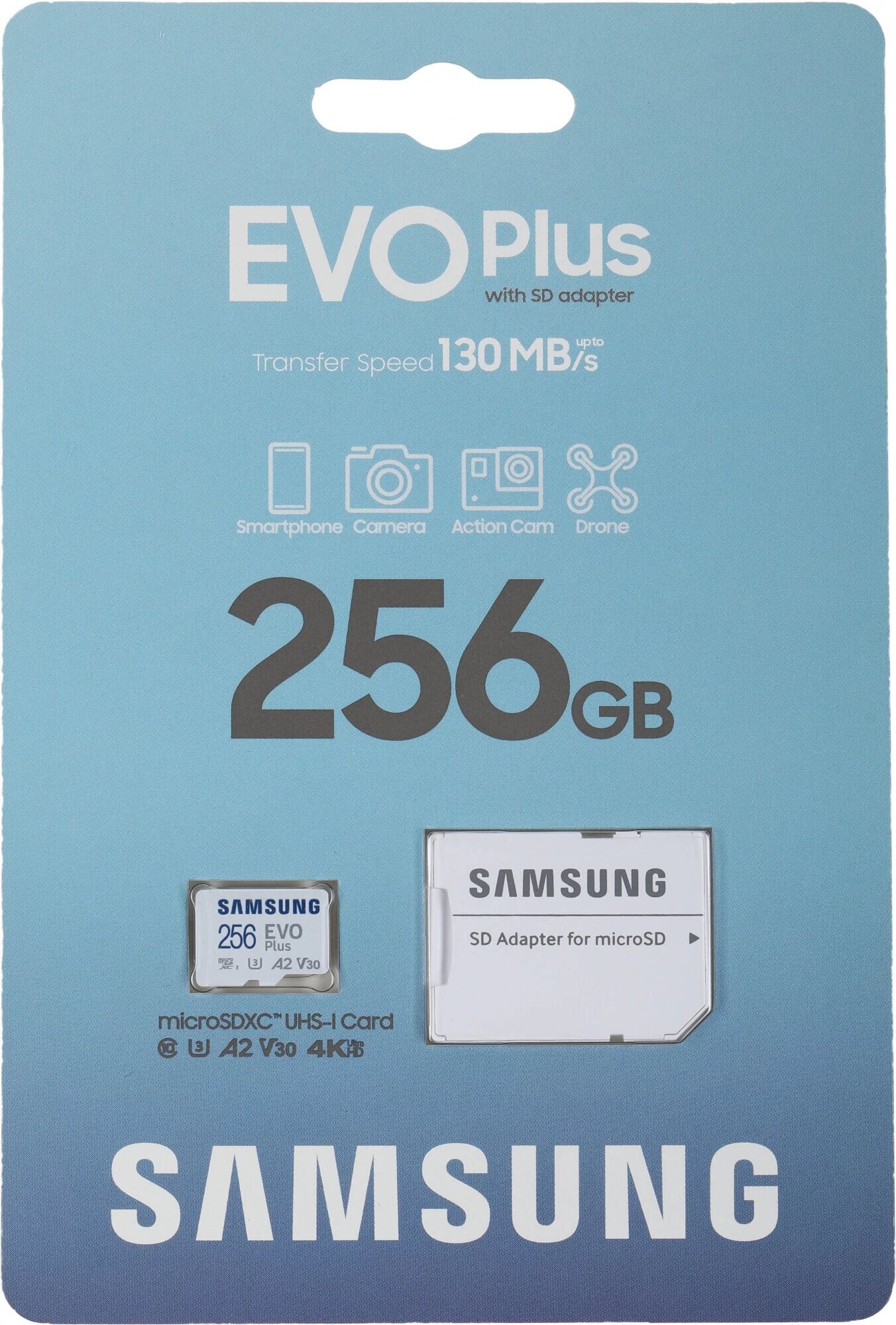 Карта памяти Samsung "Evo Plus", 256 Гб, MicroSDXC, UHS-I, SD адаптер (MB-MC256KA/APC)