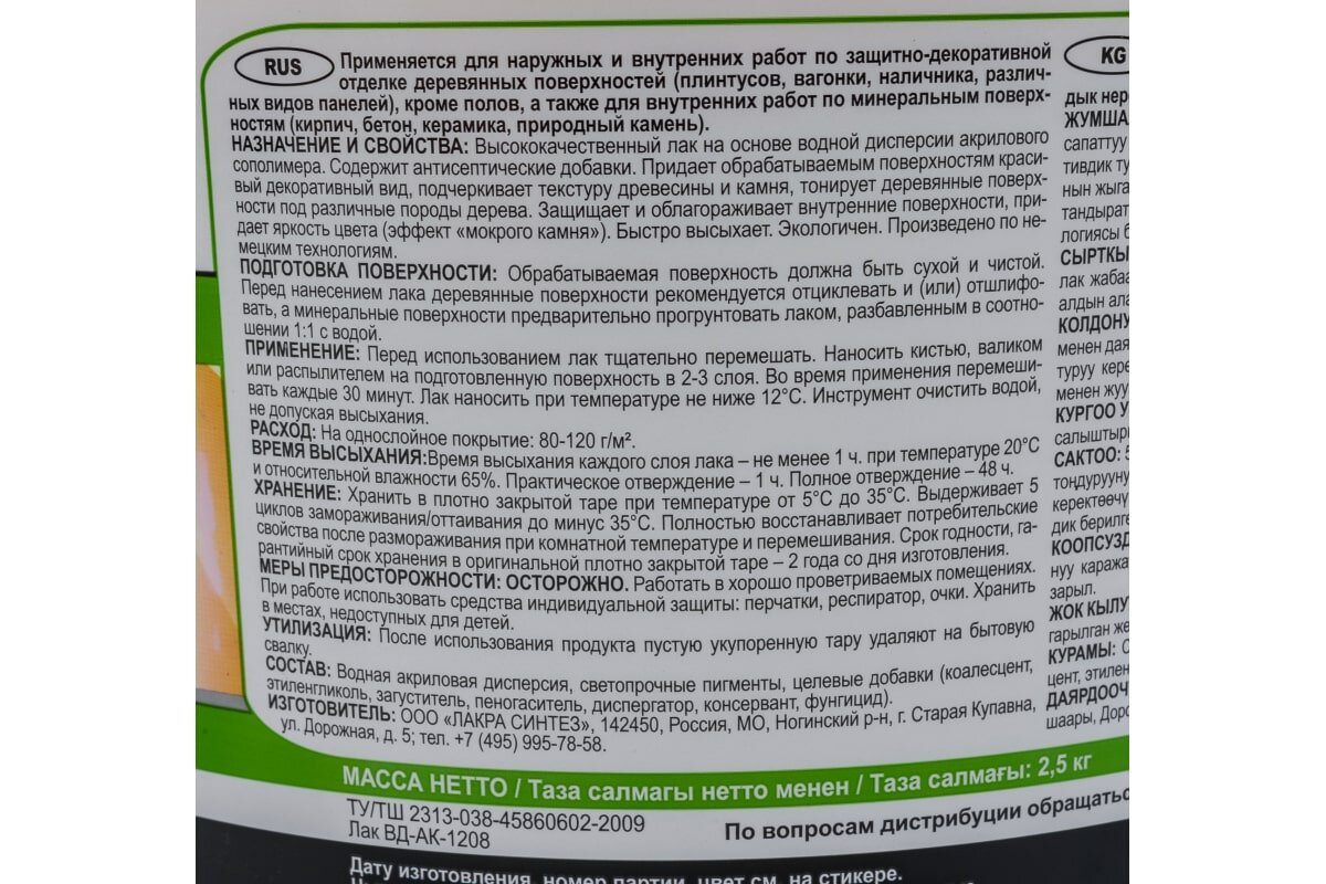 Лак акриловый лакра 2,5кг орегон, арт.лт-орегон2,5