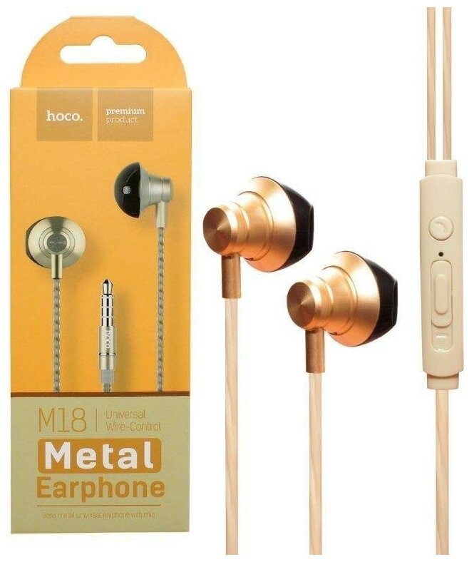 Купить Наушники HOCO M18 Gesi Metallic, Jack 3.5mm, 1.2 м, золотой, контроллер с микрофоном