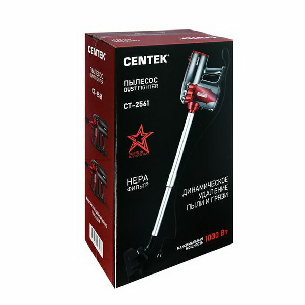 Купить пылесос вертикальный centek ct-2561 (красн/черн) /1000/150вт, 0.5л, циклон, hepa