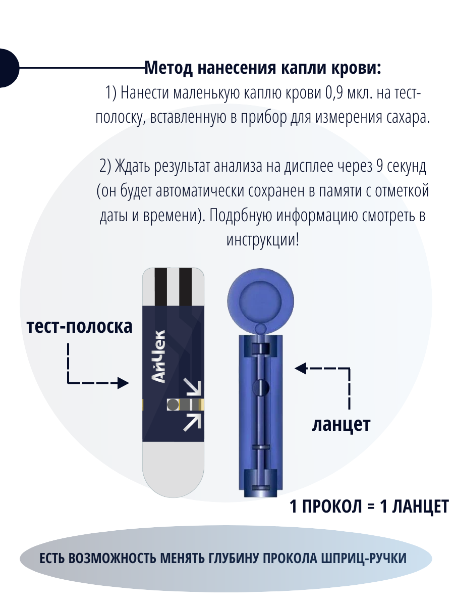 | Минусы: | IChek требует бОльший объём капли крови, по сравнению с аналогами |