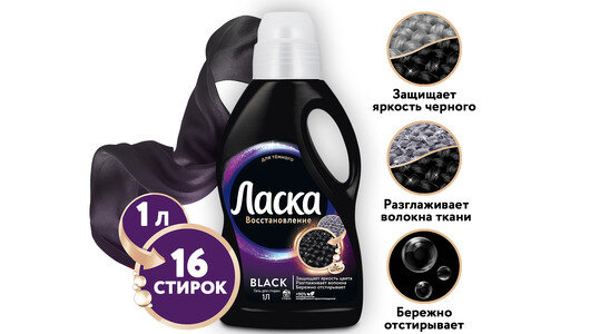 Гель для стирки Ласка Эффект Восстановления Черного (3D), жидкое средство для стирки, 1 л, бутылка