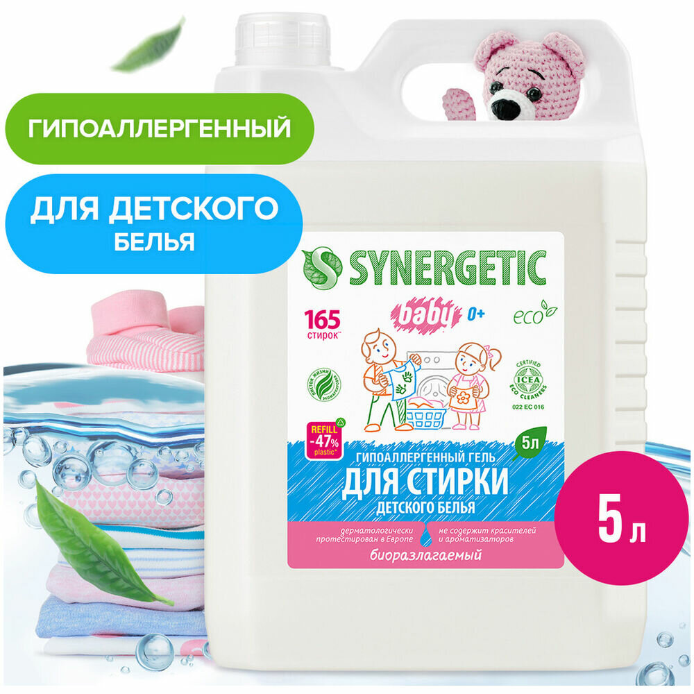 Synergetic Концентрированный гель Synergetic для стирки детского белья, гипоаллергенный, 5 л