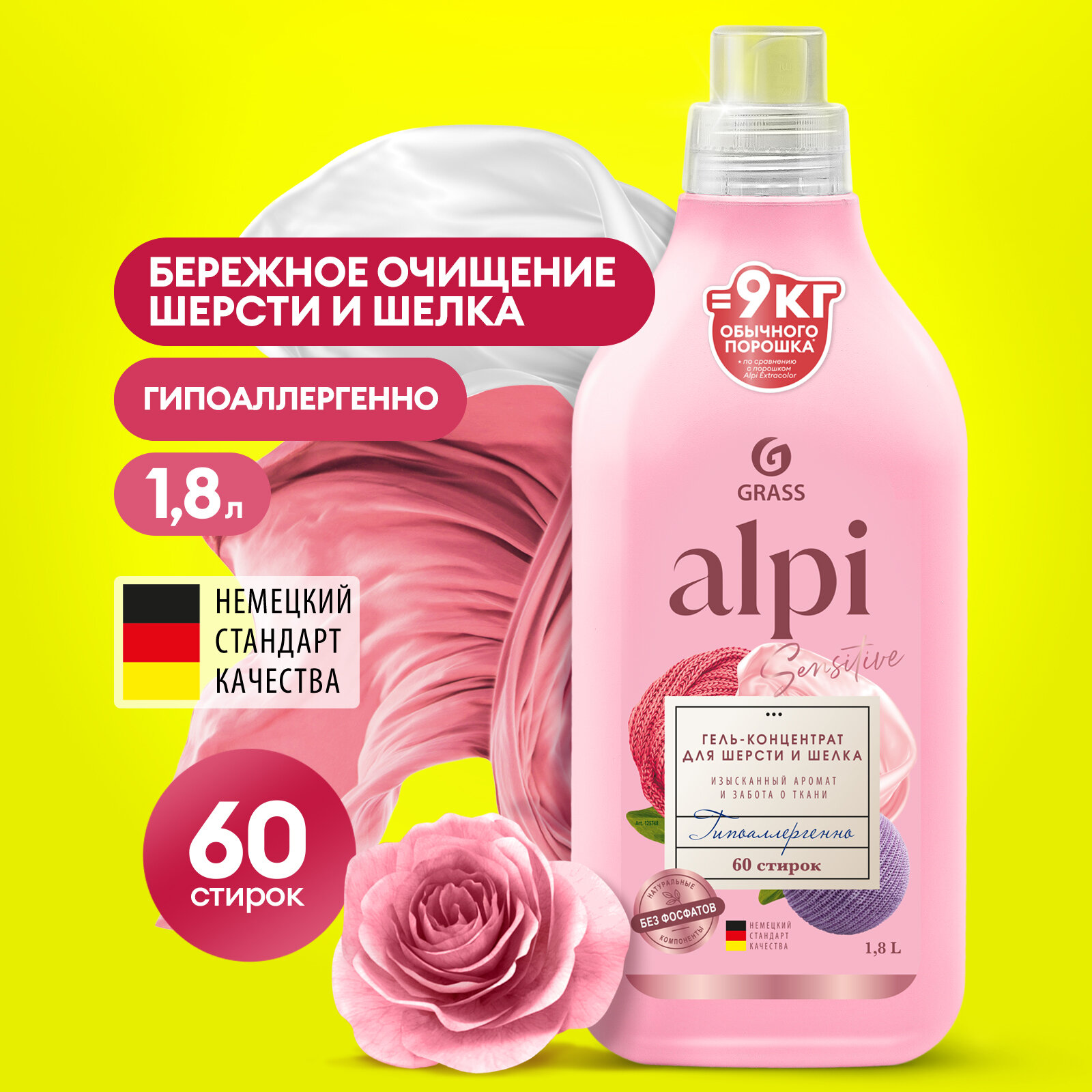 Гель для стирки шерсти и шелка Grass Alpi Sensitive 1,8л 60 стирок