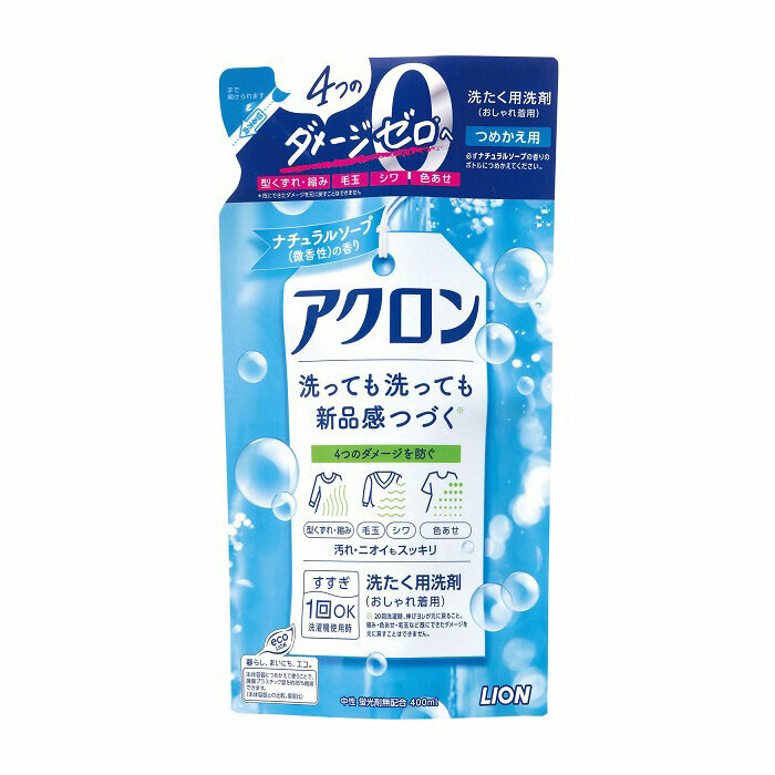 LION Жидкое средство для стирки ACRON деликатных тканей, шерсти, аромат мыла, 400 мл. сменная упаковка