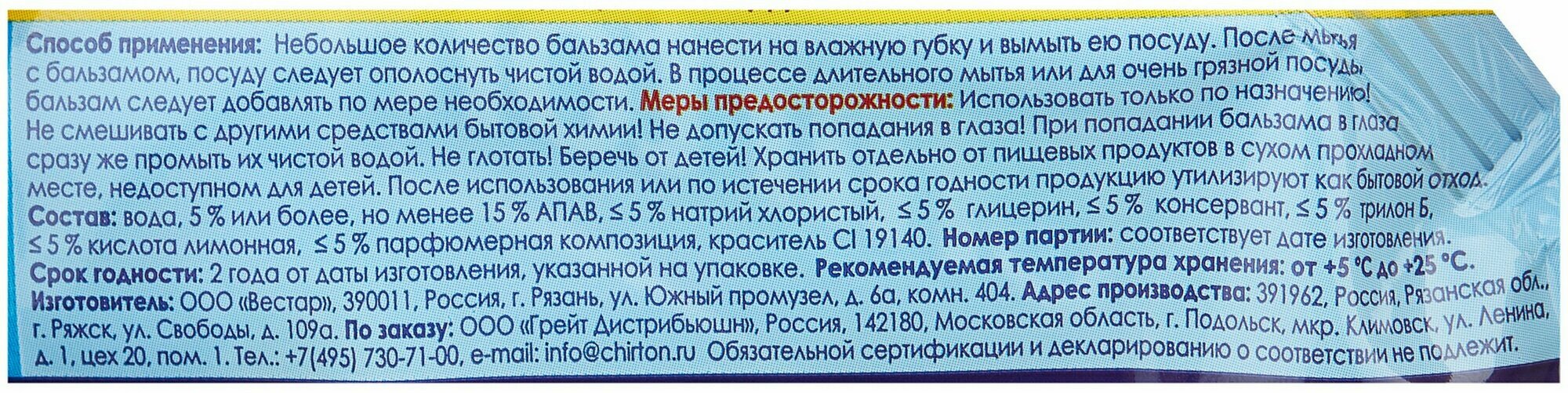 CHIRTON Гель-бальзам для мытья посуды "Лимон", 500 мл