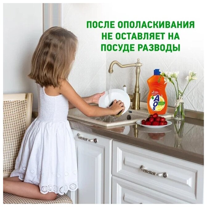 AOS Бальзам для мытья посуды, 0.9 л, Сочный лимон, №1 Против жира и максимальная смываемость