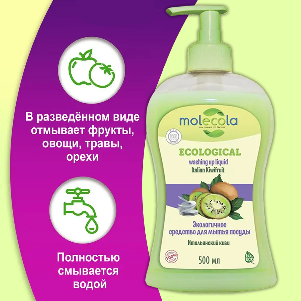 Купить MOLECOLA Средство для мытья посуды Итальянское киви экологичное, 500мл.