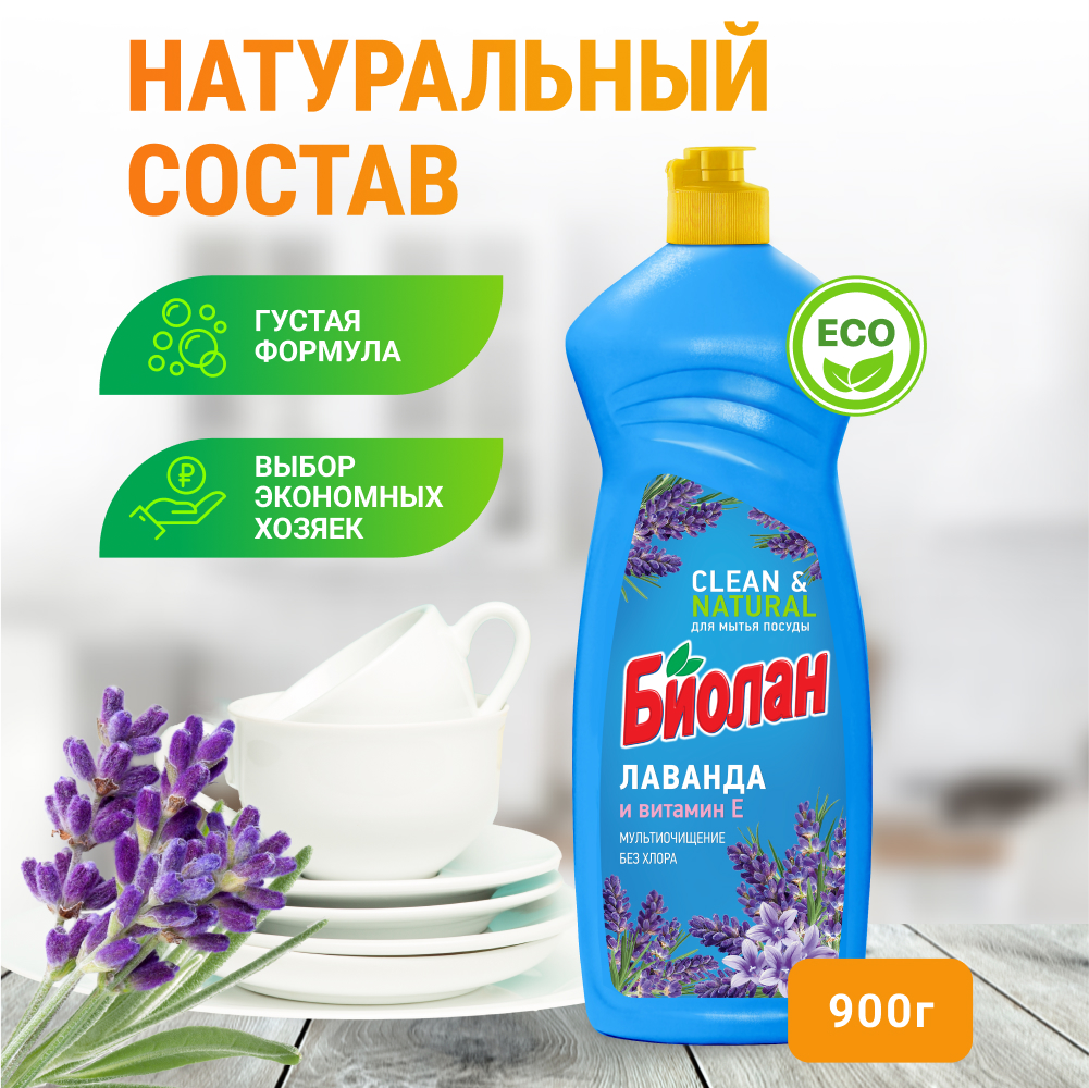 БИОЛАН Средство для мытья посуды, Лаванда и витамин Е, 900 гр