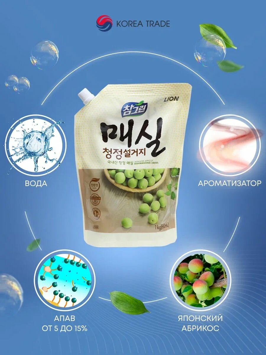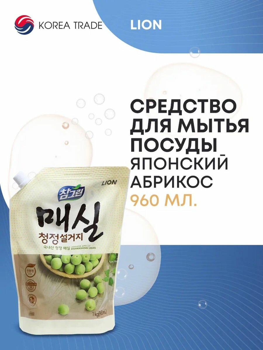 Средство для мытья посуды Lion Chamgreen Японский абрикос, 960 мл, мягкая упаковка